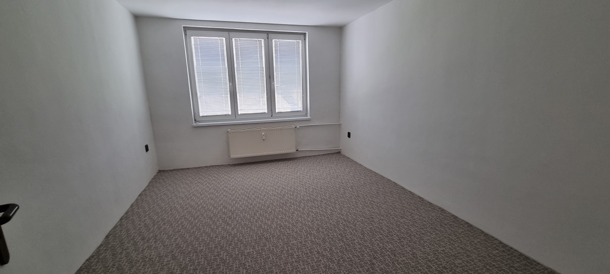 PRODÁNO ! Na prodej prostorný dispozičně dobře byt 3+1 ( 90,69 m2 ) po rekonstrukci ve 3.NP menšího bytového domu bez výtahu. Prodej včetně spoluvlastnického podílu na společných částech domu a pozemcích kolem domu, které jsou oplocené. Centrální chodba ( 8,59m2, věšáková stěna, skříň linoleum); kuchyně (13,58 m2, kuchyňská linka, el. varná deska, trouba, vestavěná lednice, digestoř, linoleum); obývací pokoj (20,2 m2, koberec, satelit, okno); ložnice (10,9 m2, koberec, střešní okno); pokoj (16,5 m2, koberec, okno); velká koupelna (14,79 m2, dlažba, vana, umyvadlo, skříňka, přípojka na pračku) - z koupelny je vstup do půdního prostoru který slouží jako sklad (5,27 m2, bojler); samostatné WC (0,86 m2, dlažba). V bytě jsou plastová okna ( trojsklo) a střešní okna Velux. V bytě jsou termostat. ventily na topení, satelit. V suterénu domu spol. prostor ( kolárna). Dům má nové vchodové dveře, nové schránky a nátěry na chodbě. Vytápění: ÚT – spol. kotel v suterénu domu, voda - obecní řad, el. 220 V.Měsíční platby: 3.500,- Kč (teplo, fond oprav, el. spol, prostor). Energetická třída G.